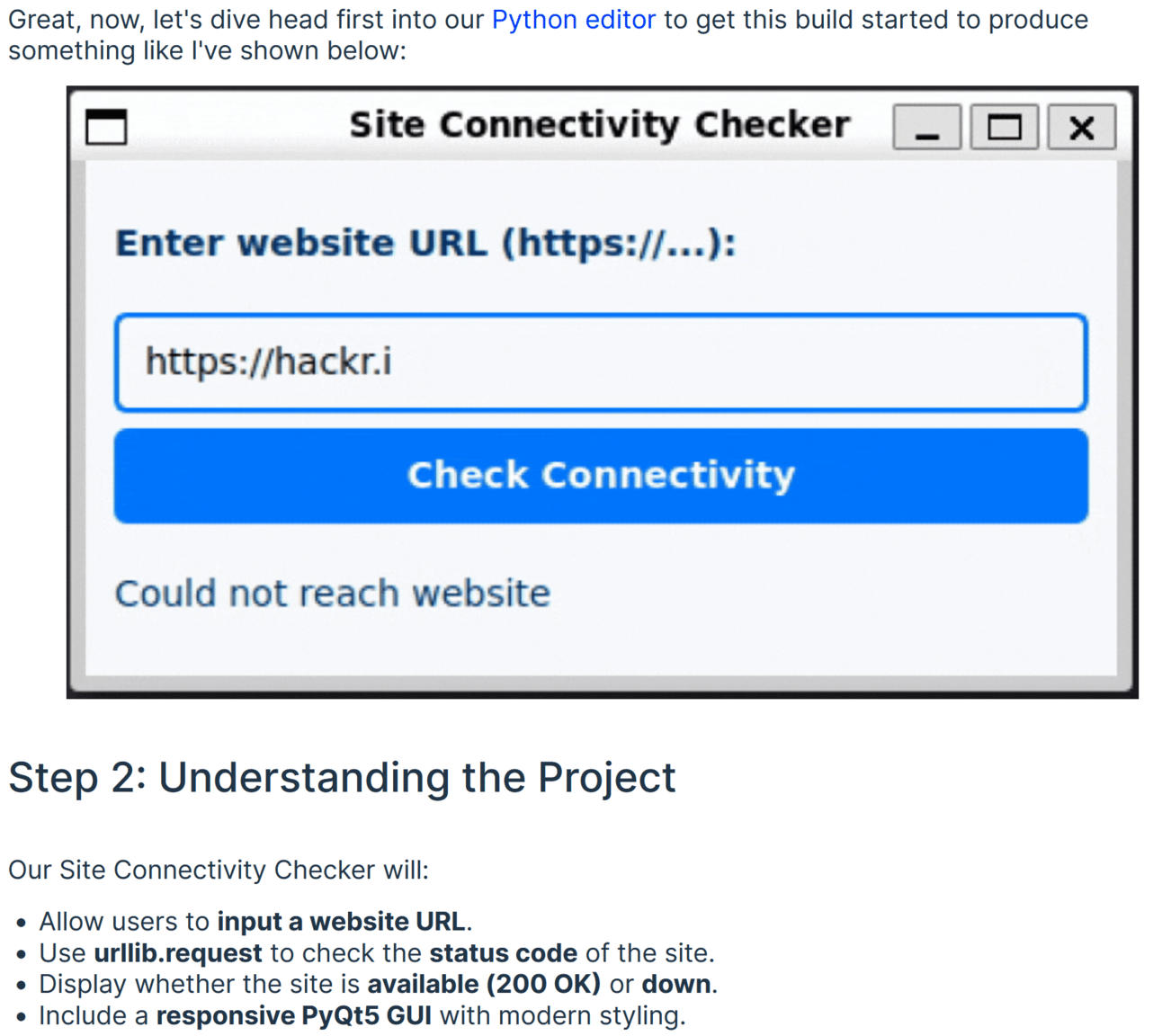 We're excited to share this new Python project with you! This time, we're building a Website Connectivity Checker app. This is a highly practical tool that lets you quickly check if a website is online or down, plus, it’s a great way to explore HTTP request fundamentals while designing a user-friendly GUI with PyQt5.